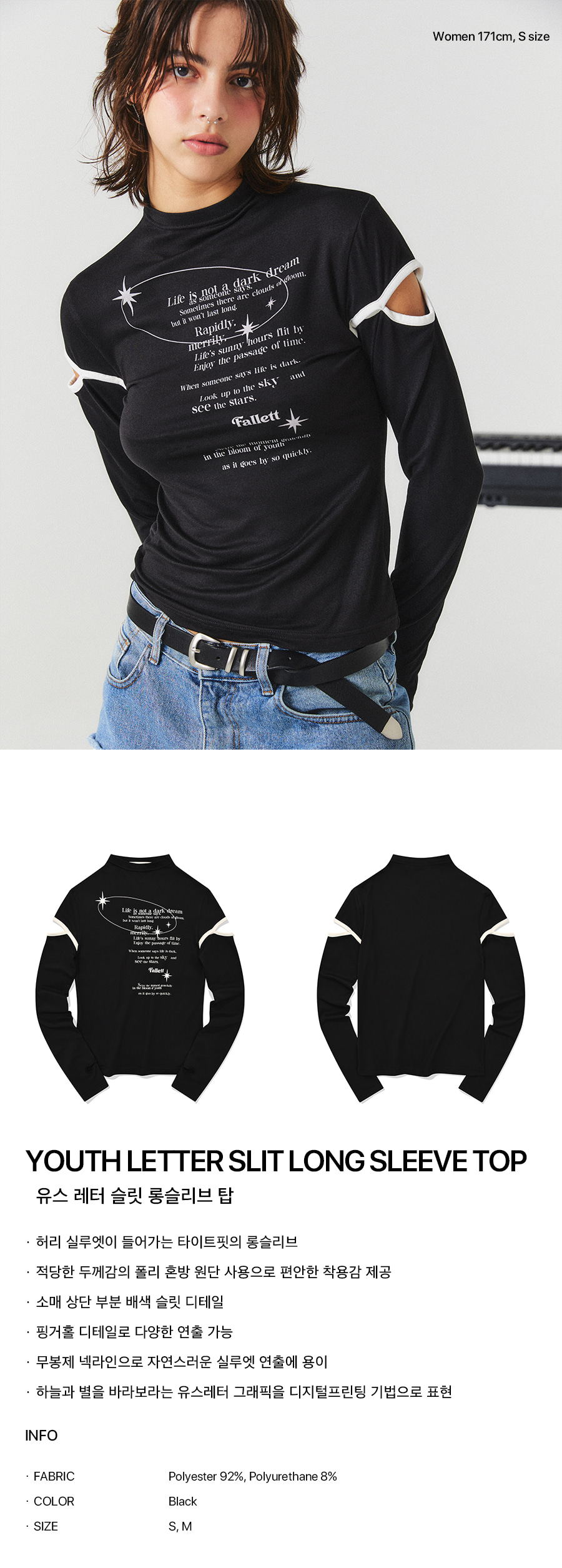 【韓國限時優惠】FALLETT - Youth Letter Slit Long Sleeve Topㅣ 截單日期:22/12/2023 早上9:00