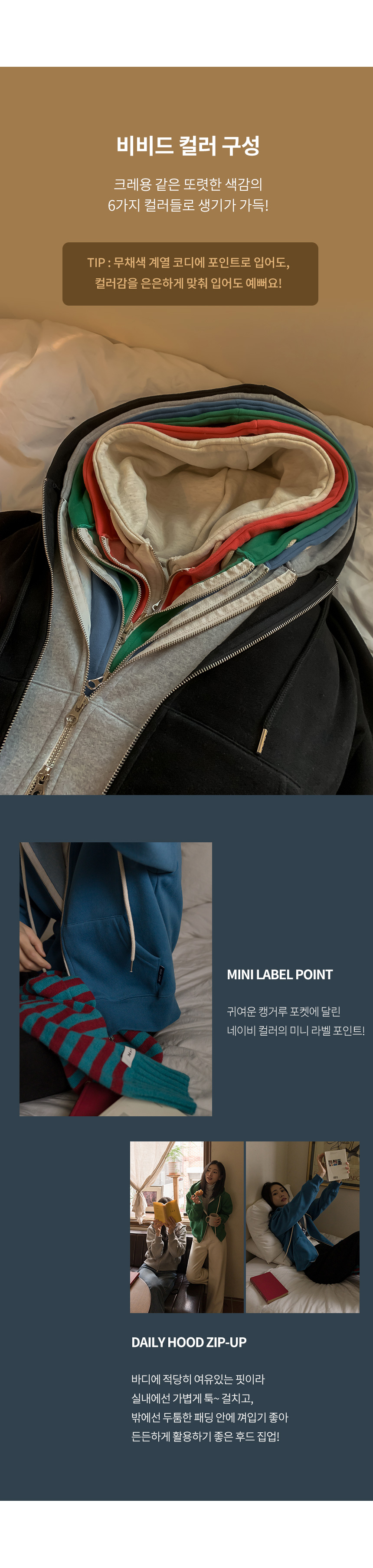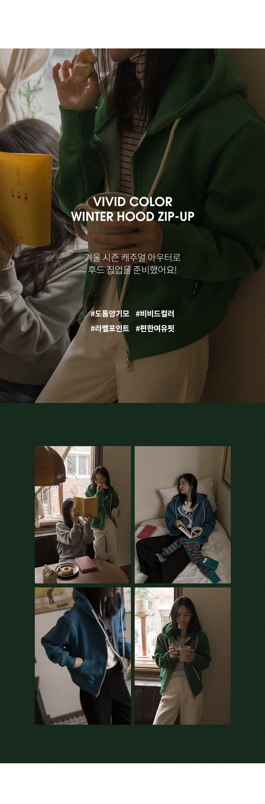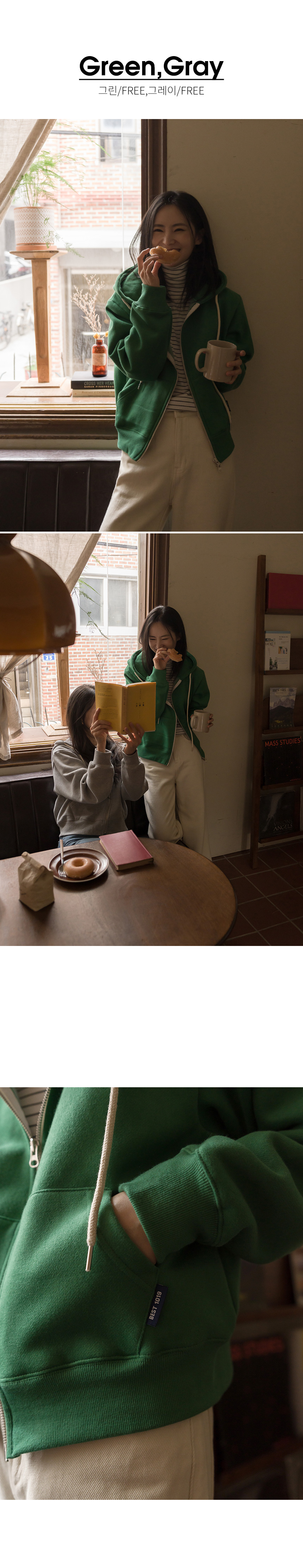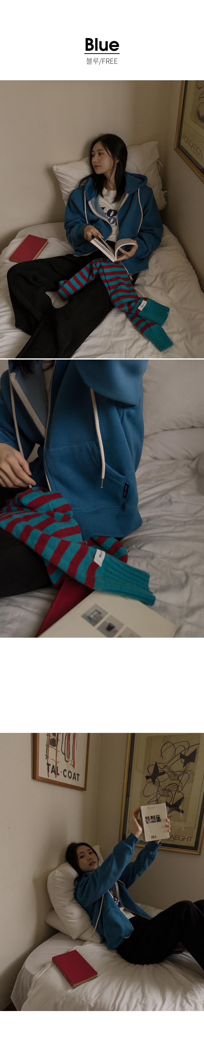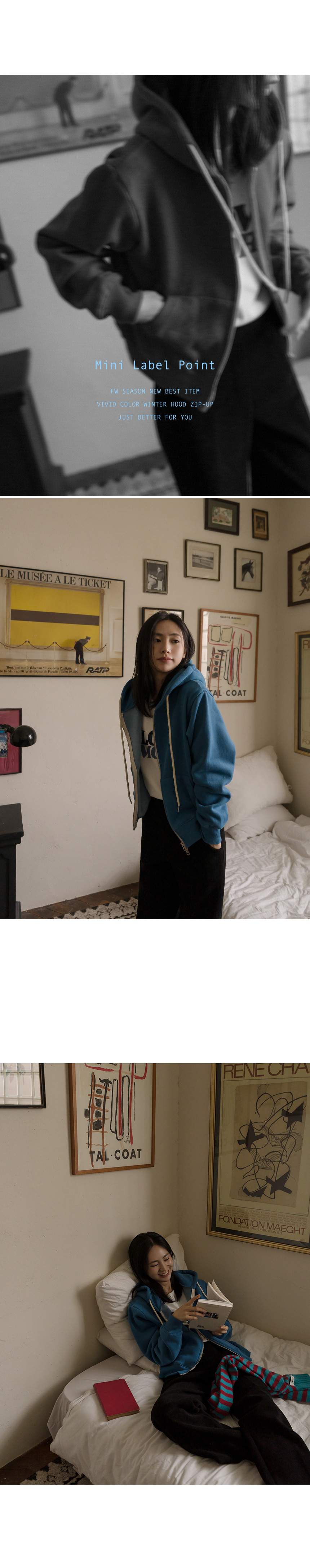 【現貨】justone-저스트원 - 5DA29040AA_비비드한 양기모 라벨 후드집업♡韓國女裝外套 藍色