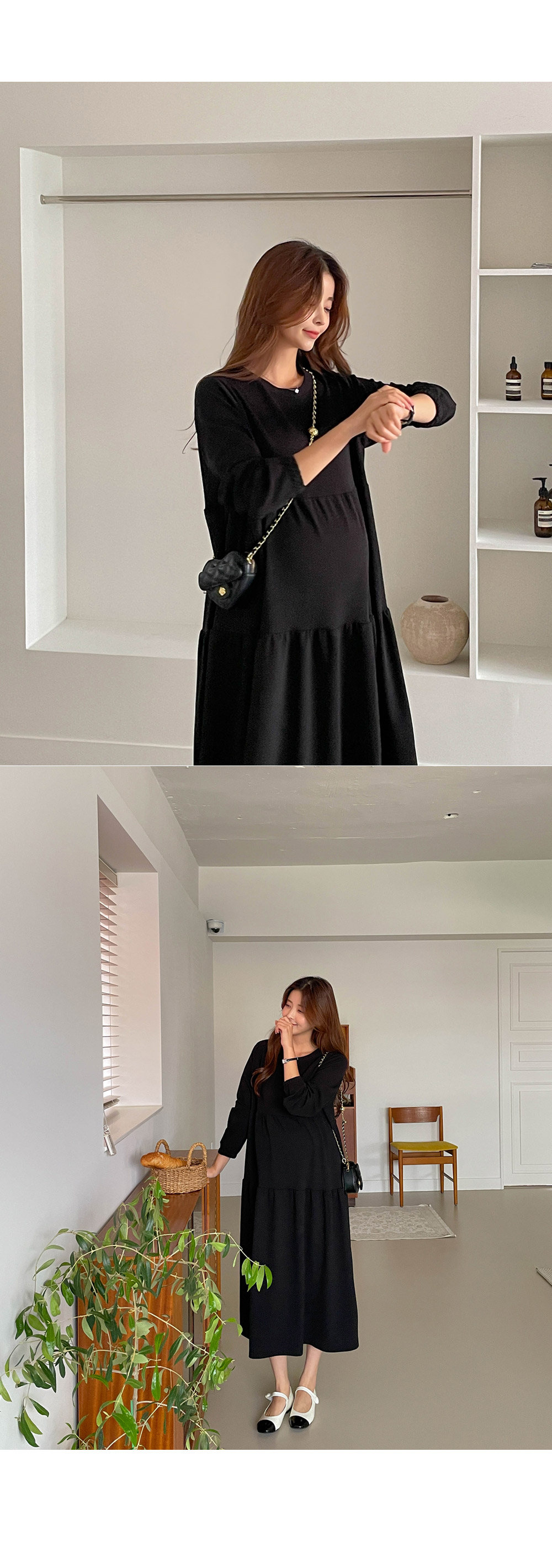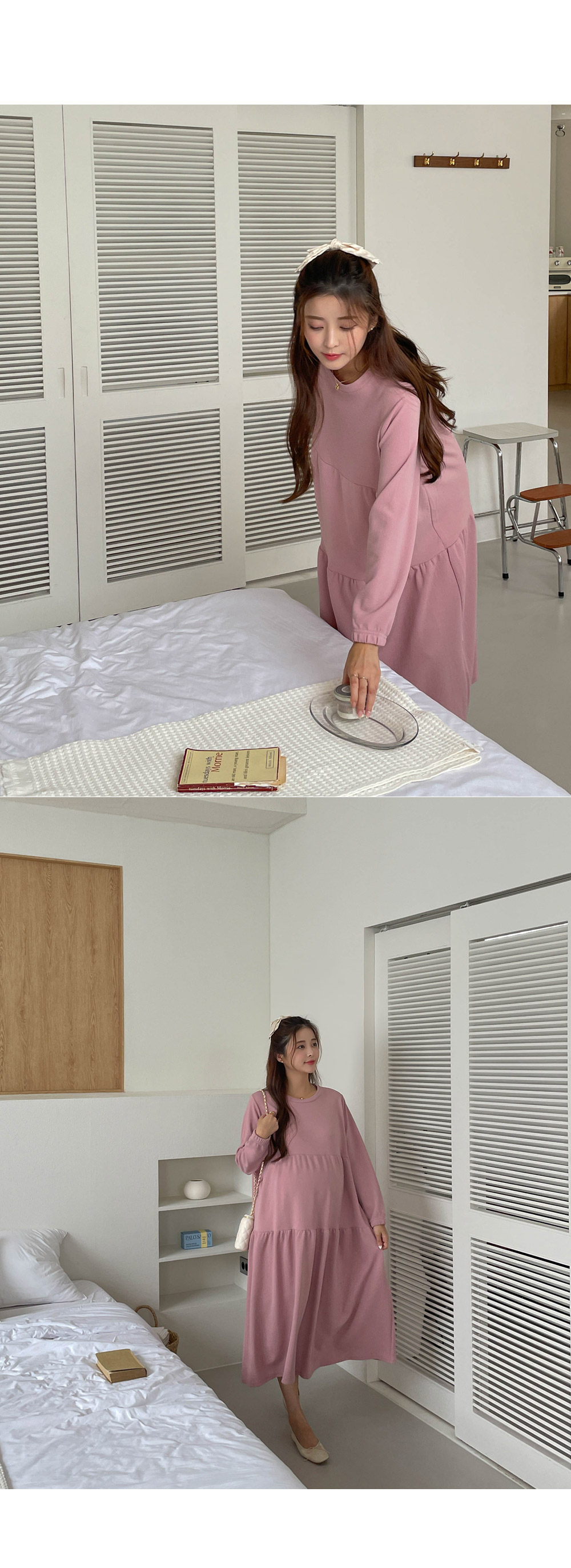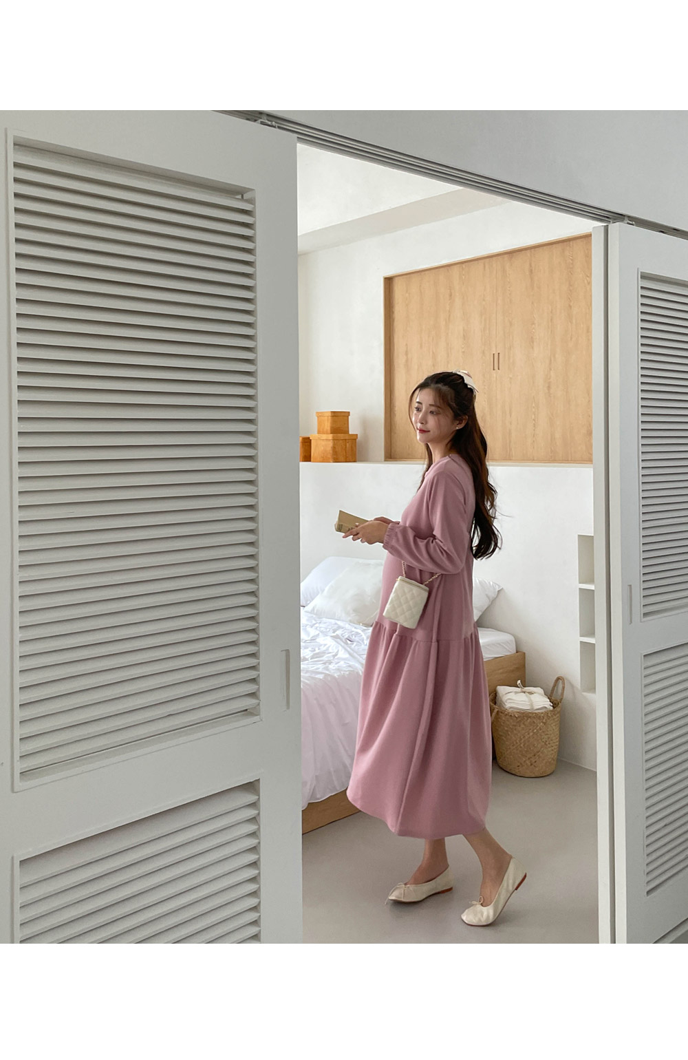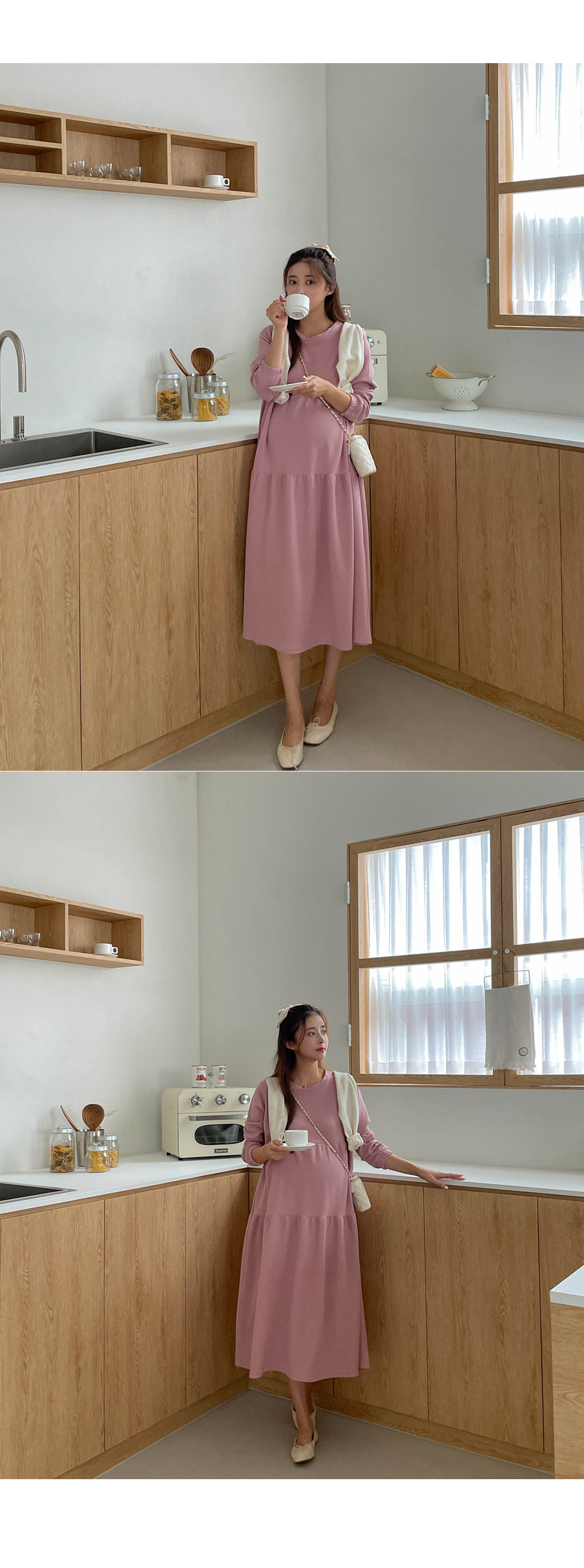 【現貨】momnuri-임부복*긴팔 달링캉캉 원피스♡韓國孕婦裝連身裙-米色