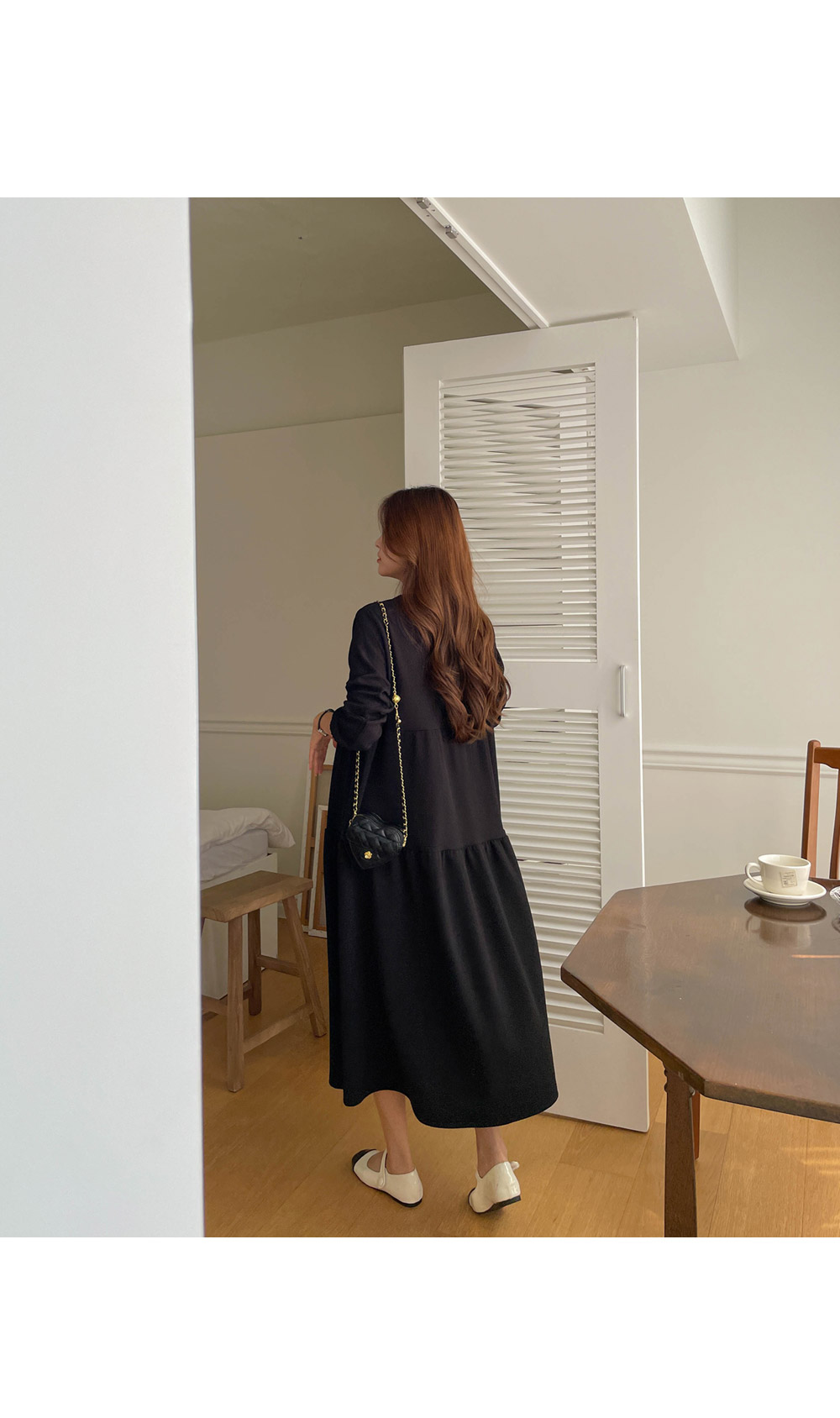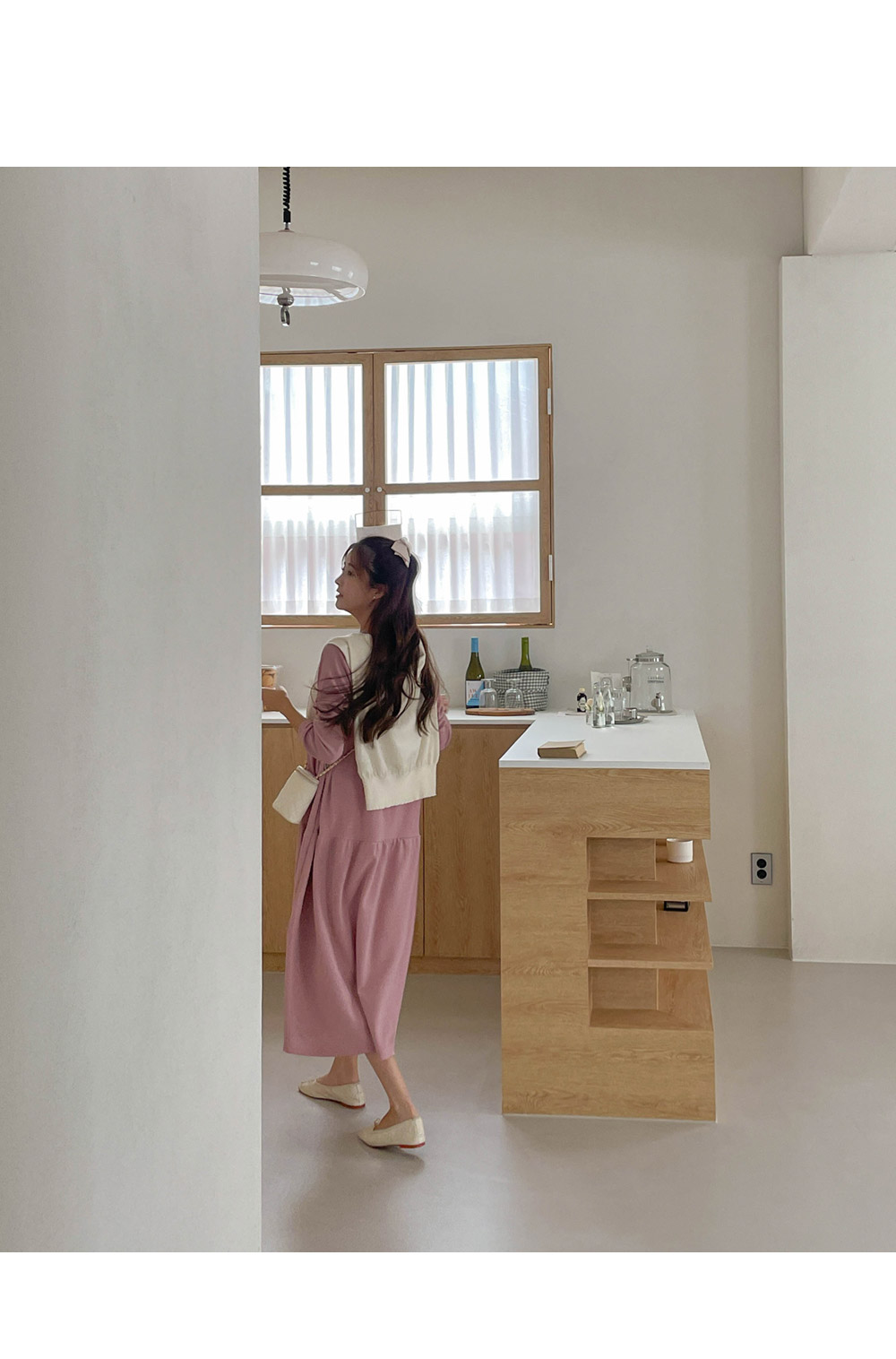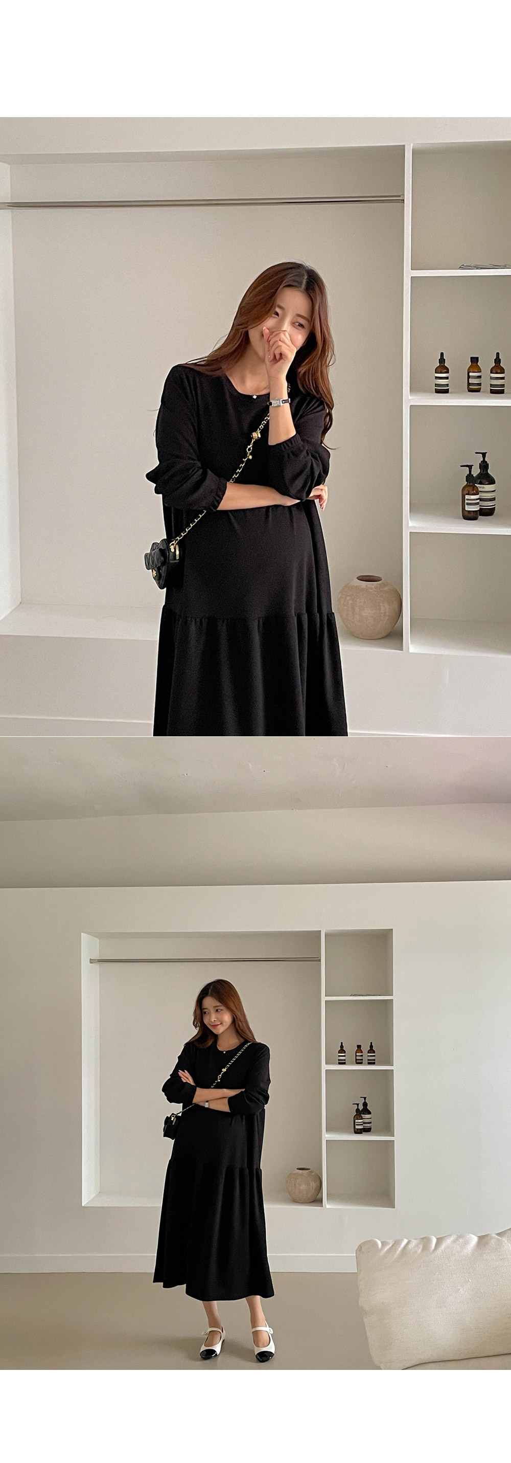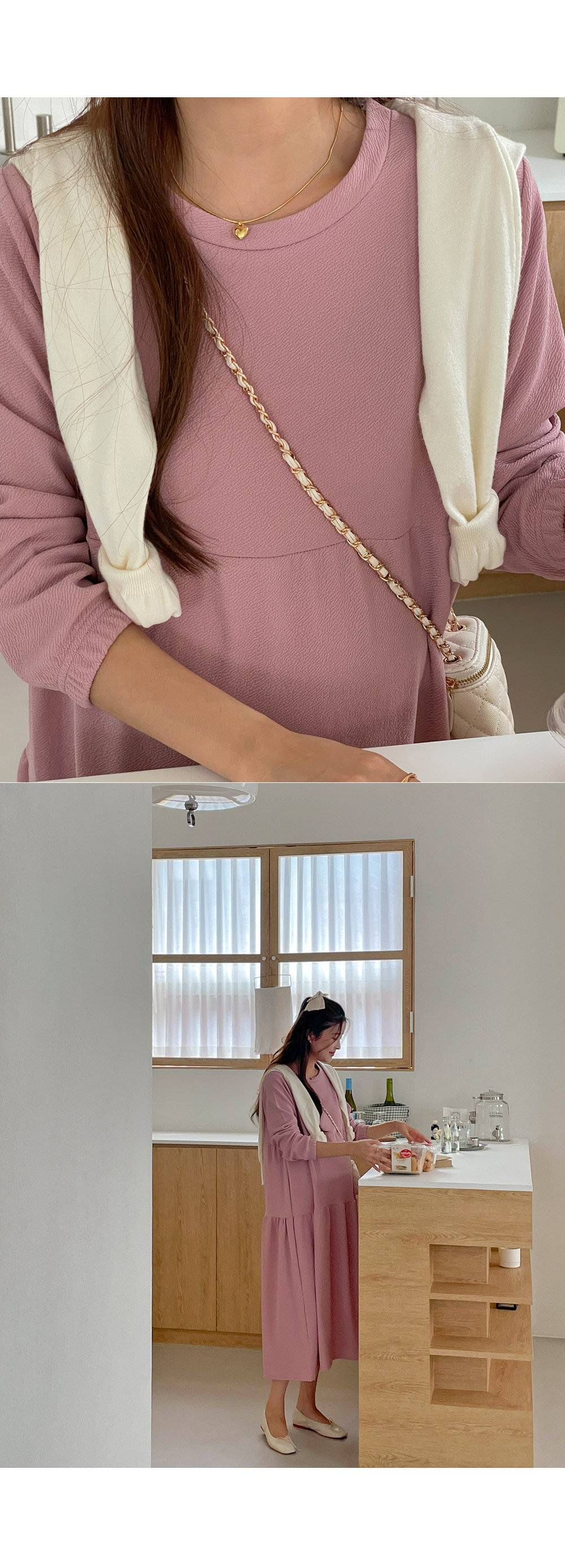 【現貨】momnuri-임부복*긴팔 달링캉캉 원피스♡韓國孕婦裝連身裙-米色