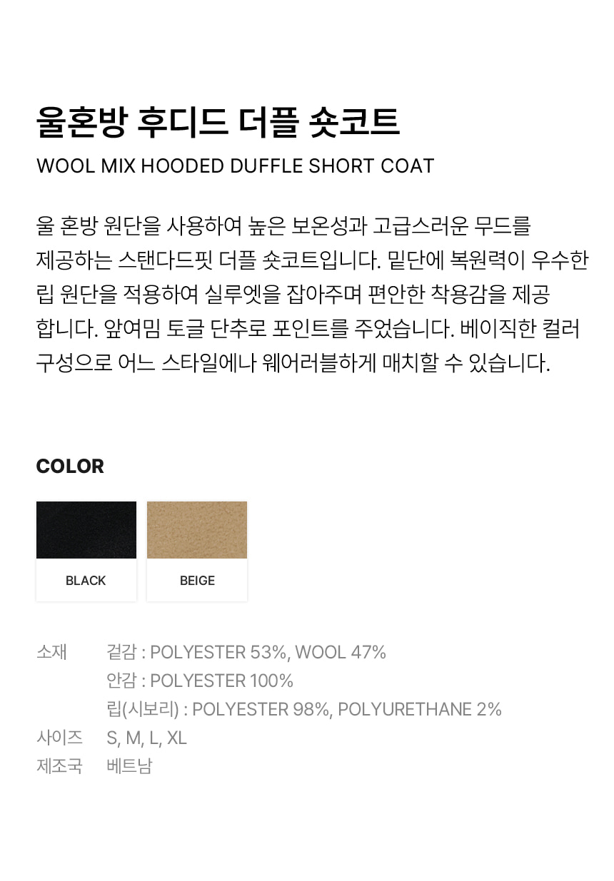 韓國What it isNt-Wool blend hooded duffel short coat beige
