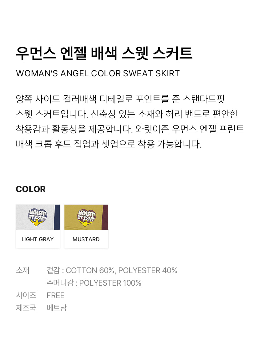 韓國What it isNt-Women’s Angel Color Sweat Skirt Mustard