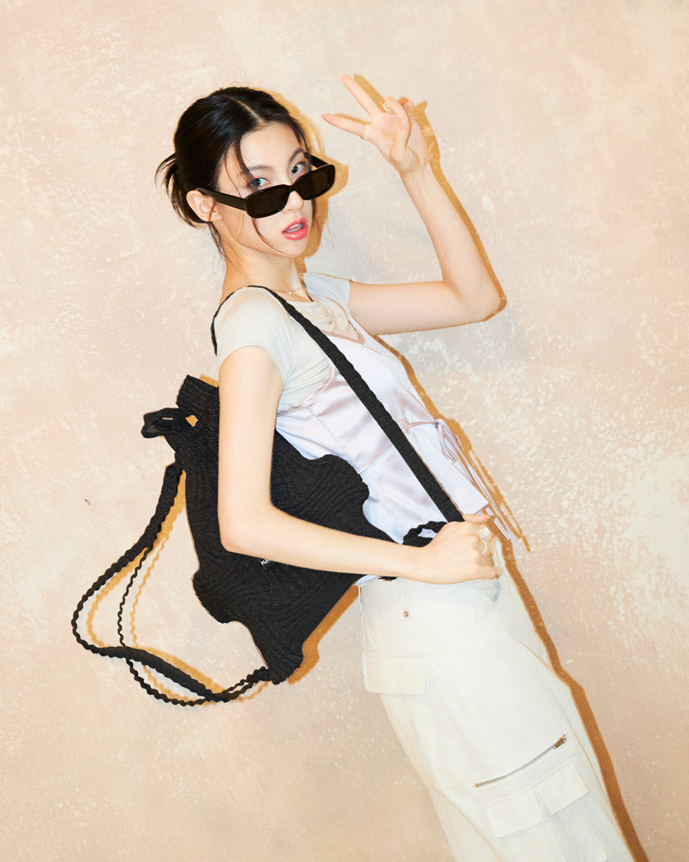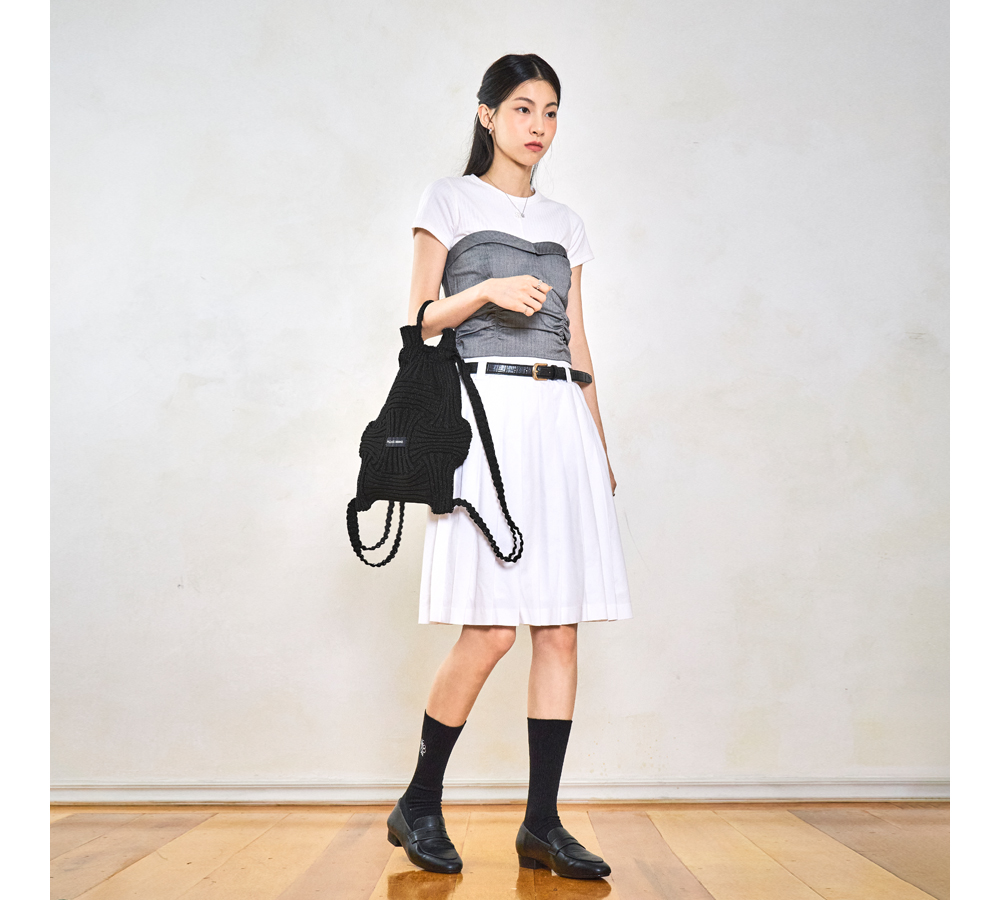 韓國PLEATS MAMA-Bow Backpack Glitter Black New Icon