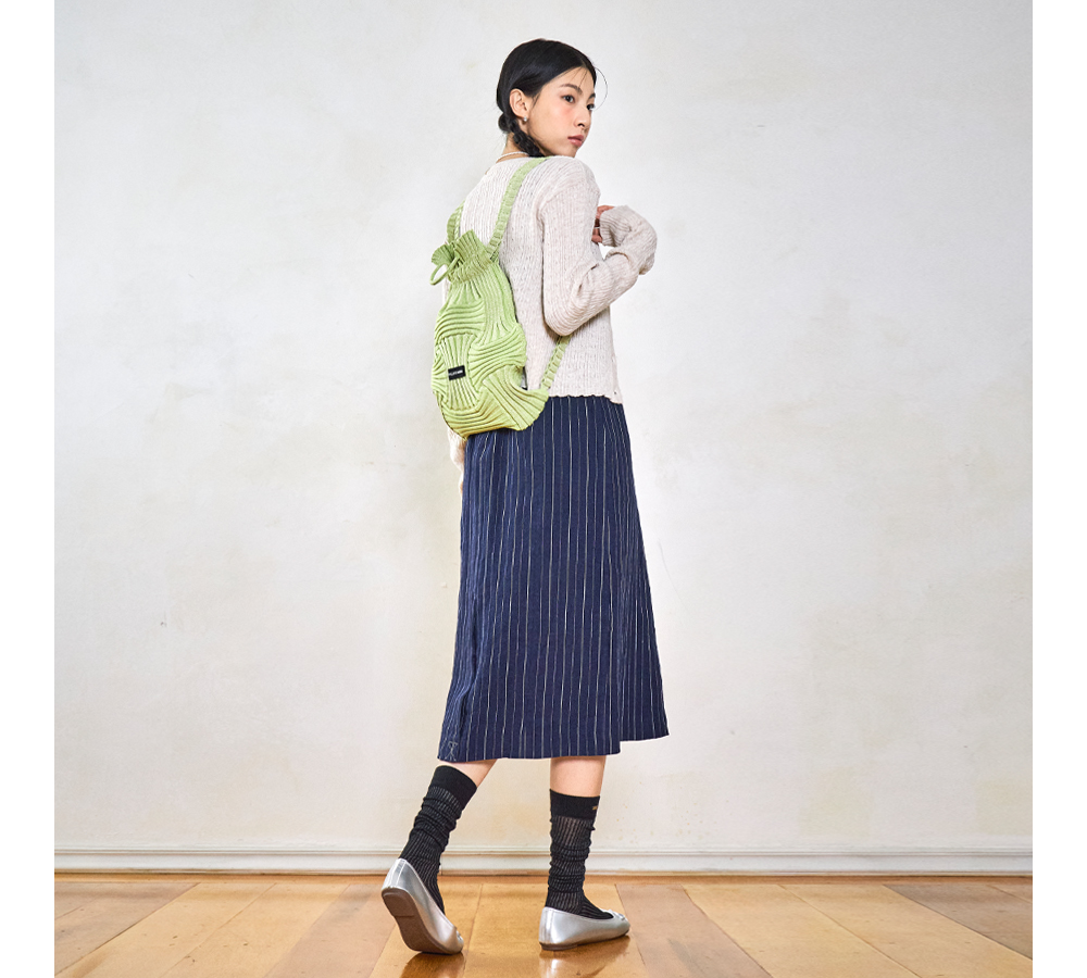 韓國PLEATS MAMA-Bow Backpack Glitter Lime New Icon