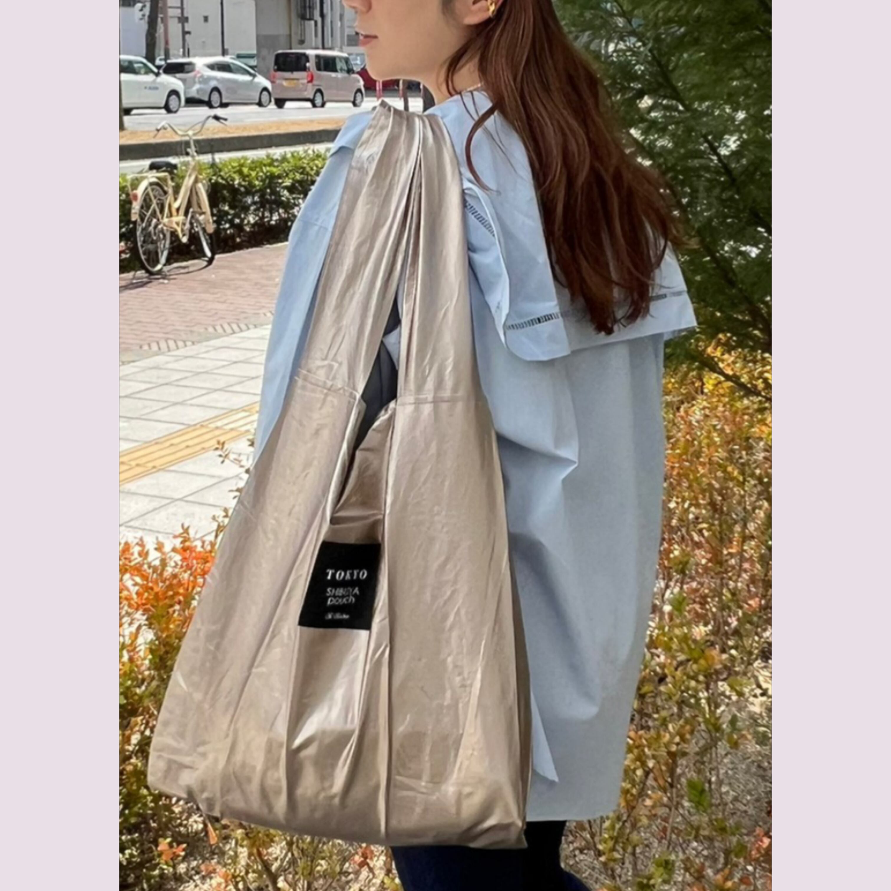 【日本直送】TOKYO SHIBUYA POUCH - Shine (白金) 直立式單肩包 | 日本超火紅環保袋 | 非常好攜帶 | 超輕便又好用